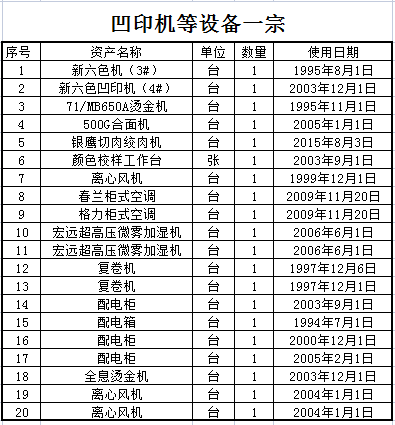 10月21日山東魯煙萊州印務(wù)有限公司凹印機(jī)等設(shè)備一宗拍賣公告