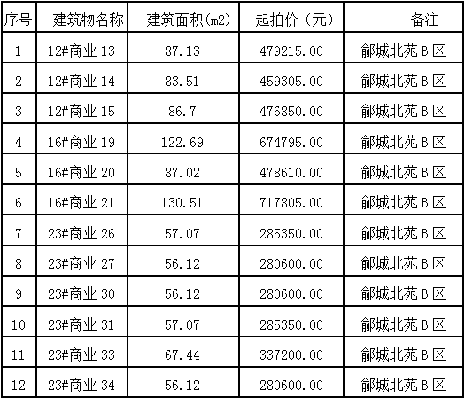 1月10日夏津縣鄃城北苑商業(yè)房、夏津高莊新村小區(qū)商品房、輔助用房車庫、鄃城新苑A區(qū)G3號樓三層房產(chǎn)租賃權拍賣公告